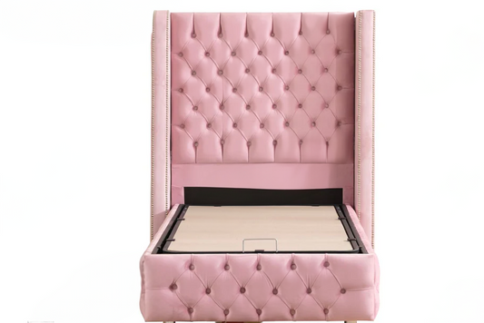 CLOUTÉ ROSE ENFANT - Lit Coffre Clouté Rose Enfant