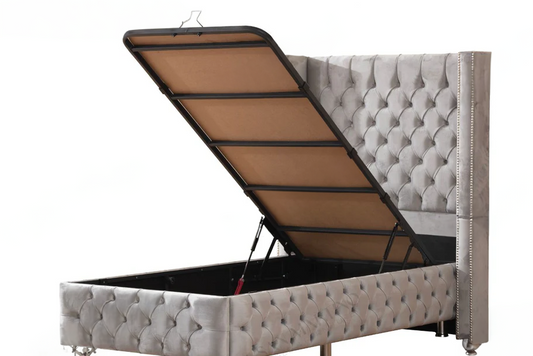 CLOUTÉ GRIS - Lit Coffre Clouté Gris