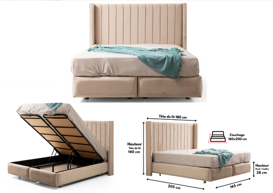 L’avantage principal d’un lit coffre est le coffre de rangement que comporte ce sommier. La capacité de ce coffre dépend des dimensions et de la hauteur du cadre. Le lit coffre avec rangement est un meuble 2 en 1 qui vous permet de passer des nuits agréables et après ouverture vous permet de ranger tous vos objets et ainsi d’avoir une chambre mieux ordonnée.