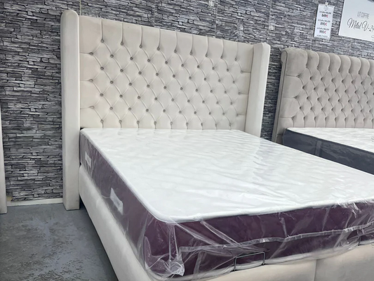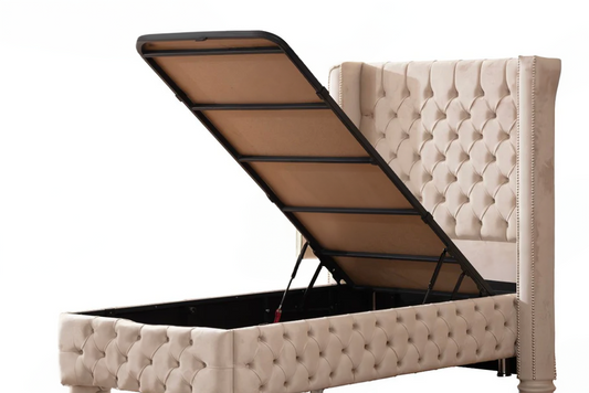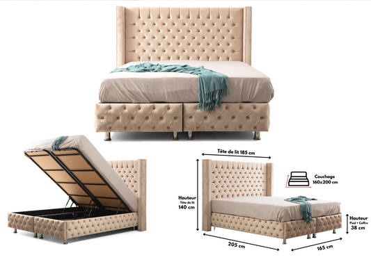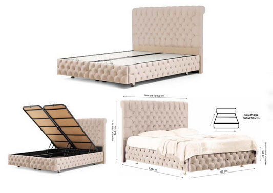 CLOUTÉ BEIGE - Lit Coffre Clouté Beige