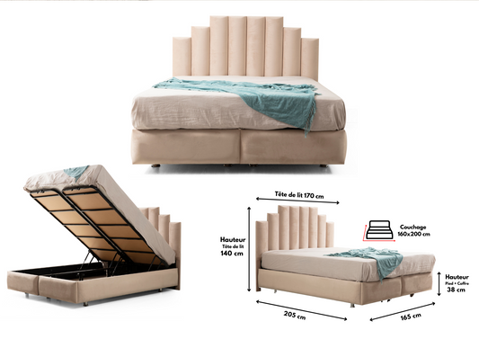 L’avantage principal d’un lit coffre est le coffre de rangement que comporte ce sommier. La capacité de ce coffre dépend des dimensions et de la hauteur du cadre. Le lit coffre avec rangement est un meuble 2 en 1 qui vous permet de passer des nuits agréables et après ouverture vous permet de ranger tous vos objets et ainsi d’avoir une chambre mieux ordonnée.